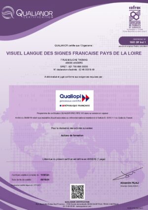 Fondé en 2016 Visuel-LSF Pays de la Loire est un Centre de Formation Professionnelle spécialisé dans le domaine de la Langue des Signes Française, langue officiellement reconnue par le décret de la Loi n°2005-102 du 11 février 2005 comme « langue à part entière » dans le code de l’éducation.